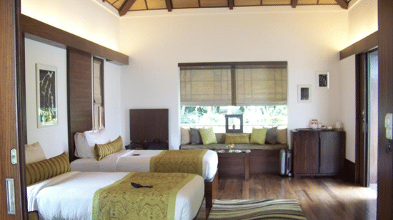 Located in a secluded, sunlit corner of the plantation, The Residence at The Serai Chikmagalur epitomises elegance and spaciousness. This villa boasts ample living and dining areas, flanked by two plush bedrooms. Bathed in natural light and surrounded by vibrant green hues, the private pool, garden and gazebo add a touch of enchantment to this luxurious holiday home, making it an ideal choice for those seeking villas in Chikmagalur with swimming pools.